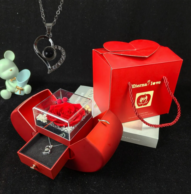 DuraFleur Eternal Love Box – Preserved Rose & Jewelry Gift