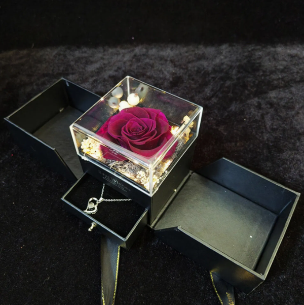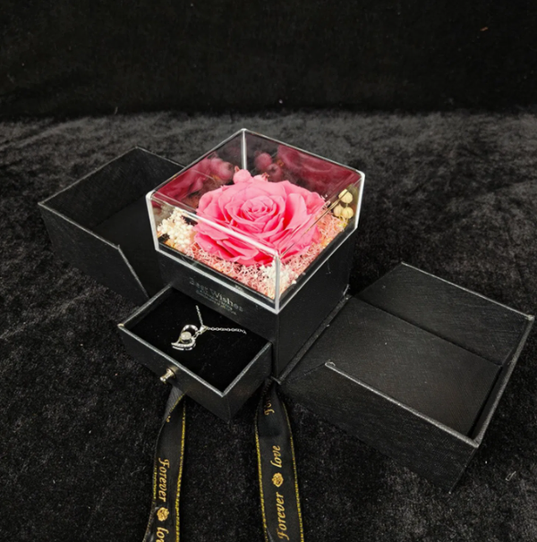 Vier de kracht van liefde die nooit vervaagt met de DuraFleur Everlove. In deze elegante cadeaubox schittert een echte, gepreserveerde roos — zorgvuldig bewaard om haar kleur, vorm en schoonheid jarenlang te behouden. Onder de bloem bevindt zich een sieraadvakje voor een extra verassing zoals een verfijnde hartvormige ketting, het ultieme symbool van genegenheid en verbinding.