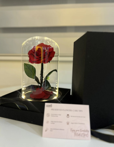Deze rozen, zorgvuldig gepreserveerd om haar natuurlijke schoonheid jarenlang te behouden, symboliseert eeuwige liefde, toewijding en schoonheid die nooit vervaagt.